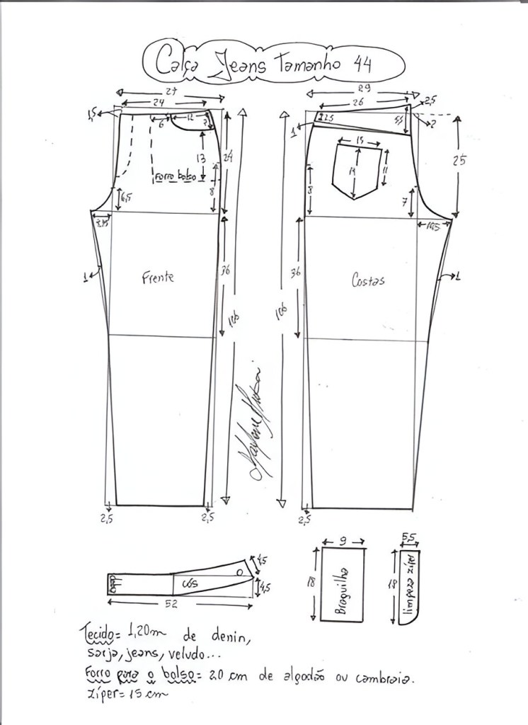 7. Patrón de pantalones jeans: Puedes comprar un patrón o crear el tuyo propio utilizando una prenda existente como guía.
