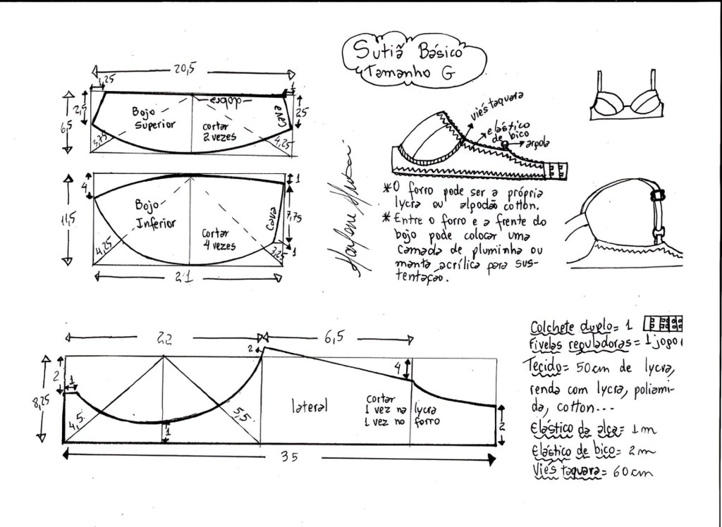 - Descarga o crea tu propio patrón de sostén según tus medidas.